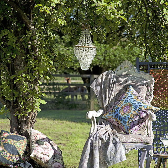 By the evening we had got quite into the spirit of things, and took some chairs out to the paddock at the end of the garden. To add to the fun my other half took some light shades out and hung them in the trees.